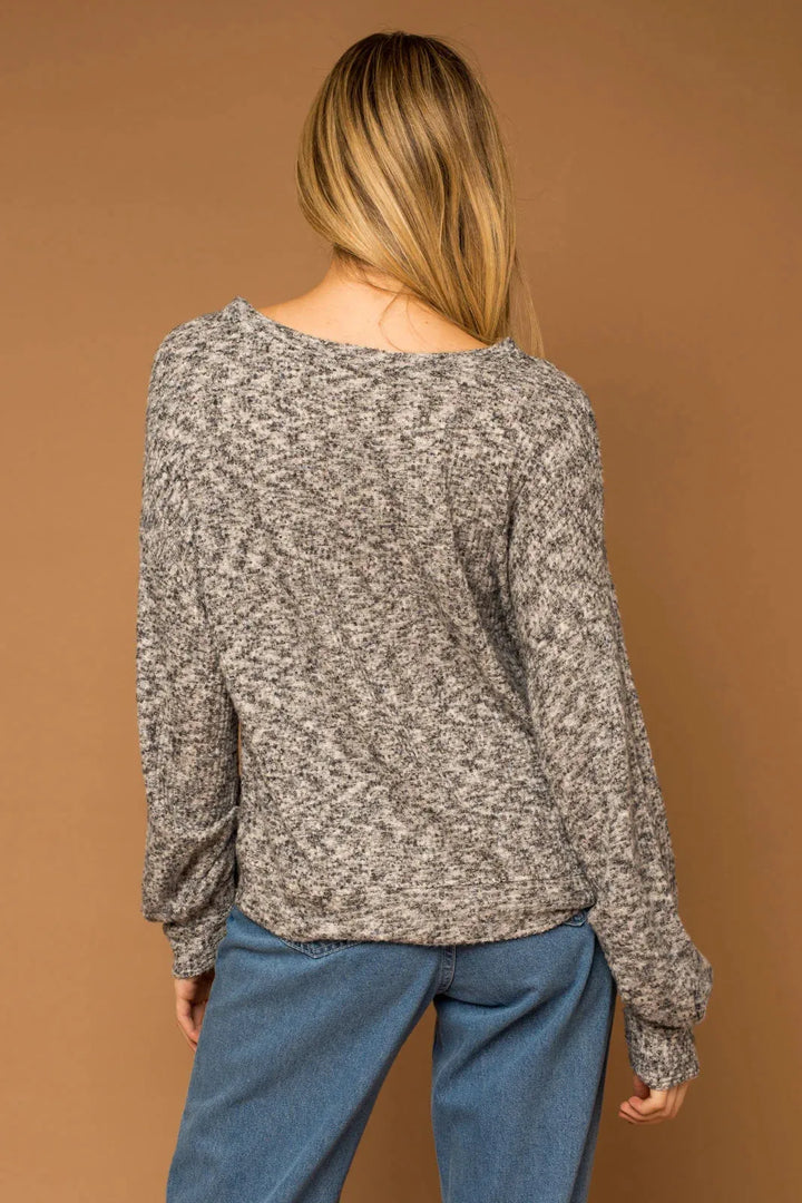 Ruched Sleeve Marled Sweater – Women’s Casual Long Sleeve Knit Top