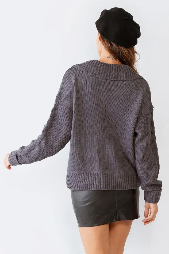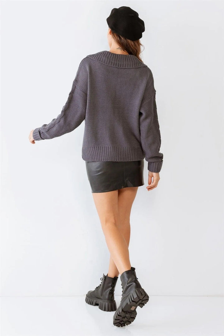 🖤 Item Features: Charcoal, solid color, cable knit, collared neckline, front contrast button-up closure, long sleeves, dropped shoulders, comfy, soft to touch, casual, fall/winter collection.